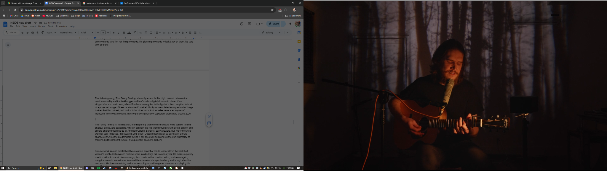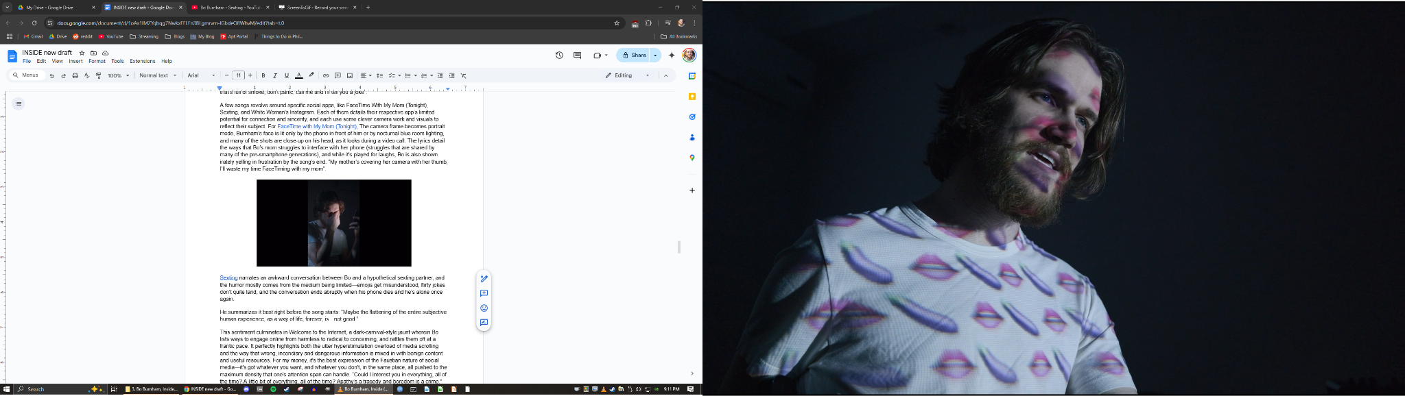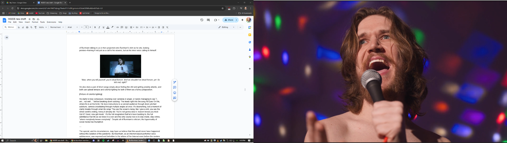 Inside is a comedy special that was written, shot, and edited by musical comedian Bo Burnham while he was stuck in quarantine during the 2020 pandemic--that’s the basic premise, anyway. He doesn’t just tell jokes or sing funny songs to the camera: he makes it a full-on production, with professional-grade lighting, camera work, and editing, putting it structurally somewhere between a traditional comedy special and a feature film. That alone makes it unique, but if Inside was just well-framed jokes and music, I wouldn’t be writing about it. I’m writing about it because it’s also full of social commentary, meta-commentary, existential crises, and questions of identity, authenticity, and spectacle that are all reflective of modern times. If future civilizations were curious what we’ve grappled with as the first generation with ubiquitous social networks and smartphones (or as the last generation before AGI), I would want it to be at the top of their watchlist. To me, pound for pound, Inside is one of the most vivid portraits of the challenges of the social media era ever created, and I hope to explain in this review how Bo Burnham paints such a portrait. To start off, let’s look at how he ended up as the man for the job--in a classic case of preparation meeting opportunity.