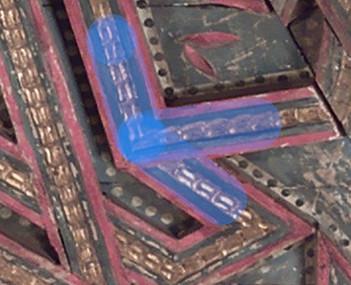 In case it isn’t already apparent, the examples of rule violations mentioned above are all from the Metropolitan Museum. Specifically, the above figures are from the lower panels of the doors in The Moroccan court, and previous two examples are from a set of ceiling panels overlooking Ottoman carpets and armors in Gallery 459.