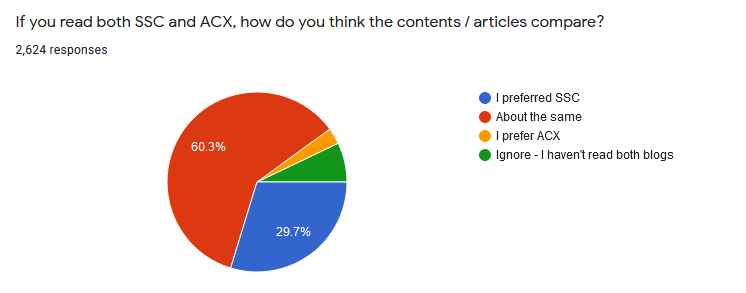 Personally, I find the ACX experience less good than that of SSC, but I can't disentangle how much of that is the substandard user interface.